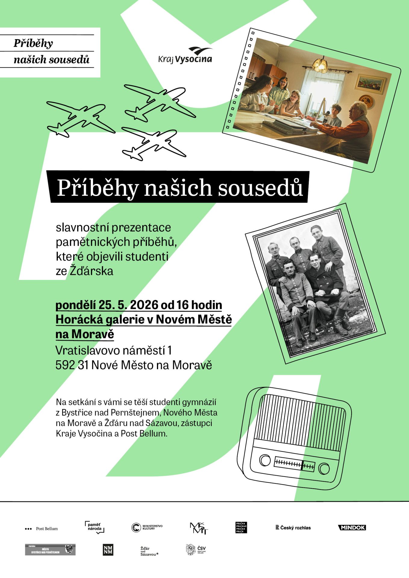 Na setkání s vámi se těší studenti gymnázií z Bystřice nad Pernštejnem, Nového Města na Moravě a Žďáru nad Sázavou, zástupci Kraje Vysočina a Post Bellum.