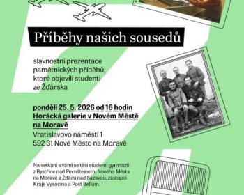Slavnostní prezentace pamětnických příběhů, které objevili studenti ze Žďárska   Pondělí 25. 5. 2026 od 16:00 hodin Horácká galerie v Novém Městě na Moravě Vratislavovo náměstí 1, 592 31 Nové Město na Moravě   Na setkání s vámi …