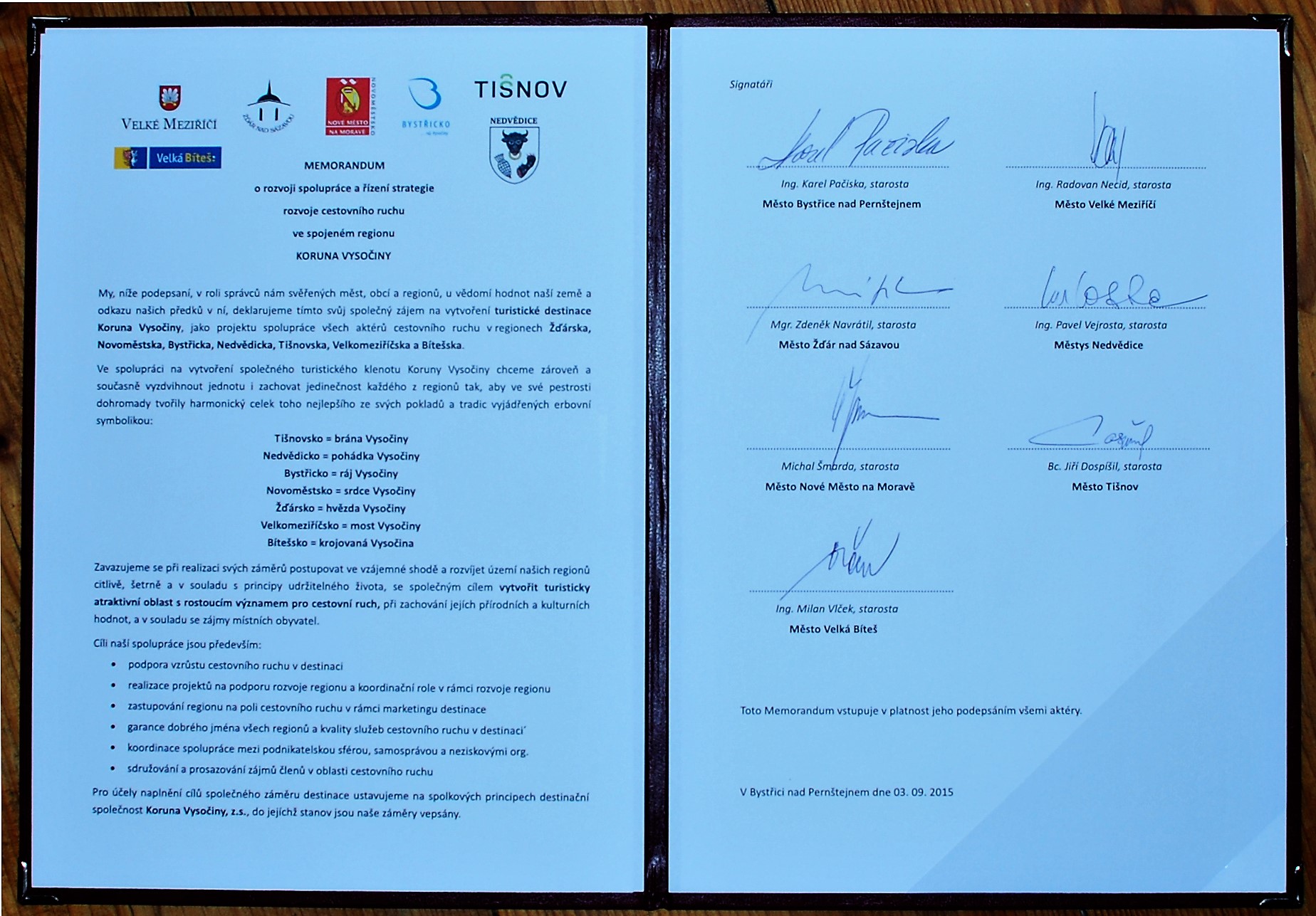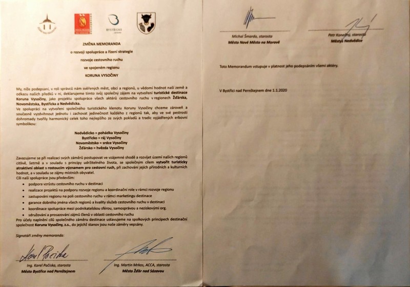 1.1.2020 vznikla změna Memoranda, jenž byla podepsána starosty 4 zakladatelských měst, Ing. Martin Mrkos, ACCA, starosta města Žďár nad Sázavou, Ing. Karel Pačiska, strosta města Bystřice nad Pernštejnem, Michal Šmarda, starosta Nového Města na Moravě, Petr Konečný, starosta městysu Nedvědice.