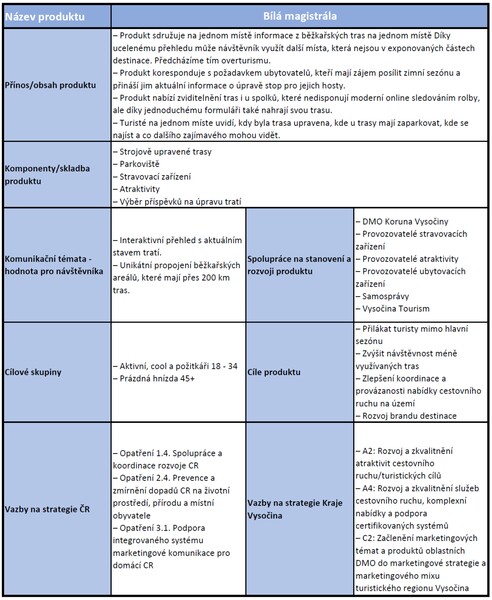 Nášim cílem u produktu Bílá magistrála Koruny Vysočiny je ukázat návštěvníkům destinace, kde jsou aktuálně strojově upravené běžkařské trasy, kde mohou zaparkovat a co zajímavého na trase uvidí.