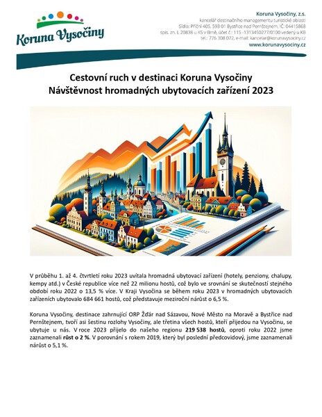 Pravidelně sledujeme vývoj návštěvnosti v destinace a provádíme srovnání v dlouhodobých časových osách. Na základě statistik ČSÚ připravujeme územní srovnání v rámci Vysočiny, kvartální vývoj v destinaci a časovou řadu od roku 2019 (poslední předcovidový rok, se kterým má smysl se porovnávat).
