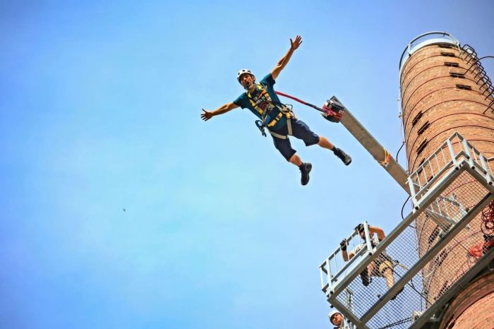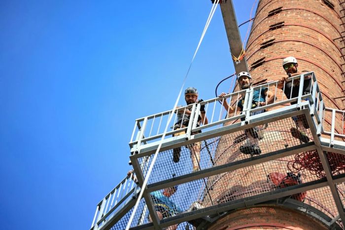 Adrenalinoví nadšenci si mohou vyzkoušet skok z komína uhelny v Továrně Vír