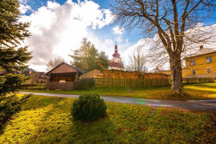 Výchozím bodem podzimního výletu je vesnice Krásné, která svým jménem rozhodně nelhže. Zaparkovat můžete u obecního úřadu nebo před místní prodejnou. Vesnička se rozkládá po obou stranách řeky Svratky, která historicky tvořila hranici mezi Markrabstvím moravským a Královým českým.