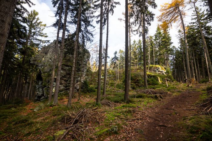Pokud máte ještě dost energie na malou zacházku, můžete se vydat po červené značce na Rybenské perničky, což jsou dva oddělené skalní bloky. Na vrcholové plošině východní skály jsou tři skalní mísy, největší má průměr až 60 centimetrů a hloubku dvacet centimetrů. Název pochází od slova perničky - zdrobněliny pernice, což je mísa s drsným povrchem na třený mák. Lidem tyto prohlubně ve skále připomínaly právě pernice. Dřív se těmto mísám přisuzoval i kultovní původ, ale dnes víme, že vznikly erozí.