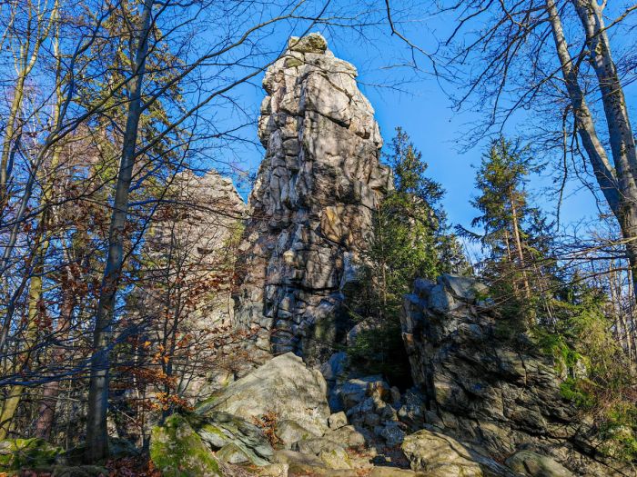 Další zastávkou na červeně značené cestě je Malinská skála, jedna z nejkrásnějších rulových formací Žďárských vrchů. Dvacet metrů vysoké skály jsou uspořádané do kruhu kolem vrcholu s výhledem na okolní krajinu, kam se dá dostat i bez horolezecké výstroje. Červená značka poté pokračuje k Lisovské skále - i tam se dá vystoupat až na vrchol. Pod zhruba dvanáct metrů vysokým masivem se ve svahu rozkládá takzvané kamenné moře.