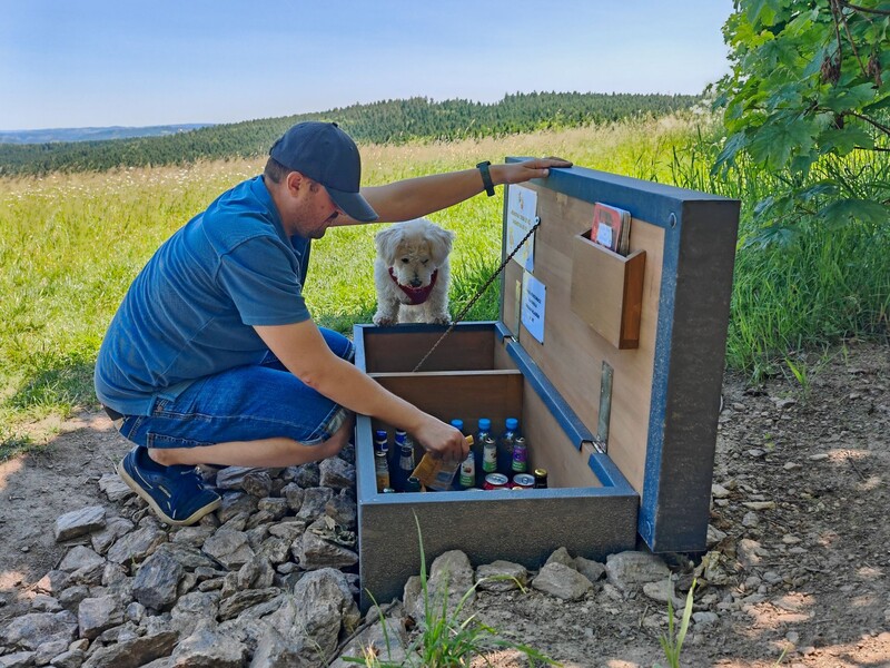 Bedna s občerstvením za pětadvacet korun letos přibyla také v Baru u Broučků na kopci Kamenice nad věcovskou osadou Roženecké Paseky; bar provozují tamní dobrovolní hasiči.