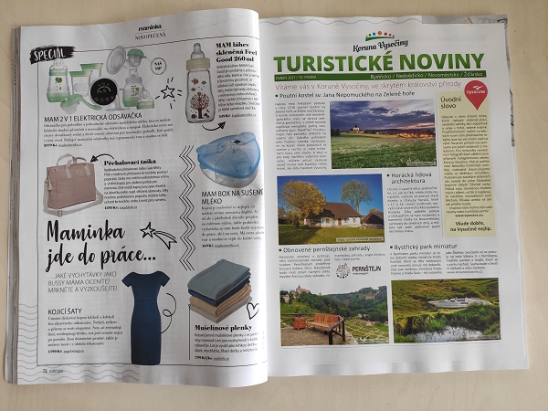 Na podporu cestovního ruchu a prodloužení sezóny, jsme domluvili spolupráci s časopisem Maminka. Naše turistické noviny jsou přílohou srpnového vydání celorepublikového časopisu.