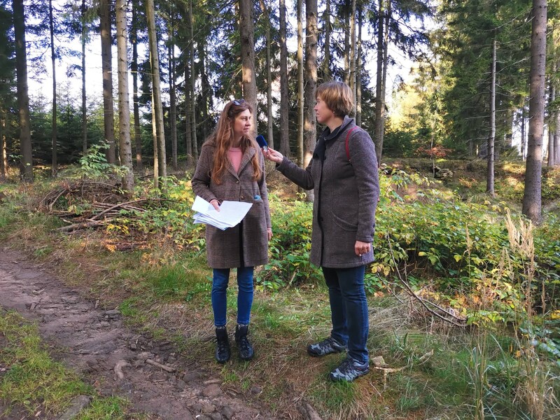 Natáčení reportáže pro Český rozhlas o bývalé chatě na Harusově kopci s ředitelkou Horáckého muzea Alicí Hradilovou
