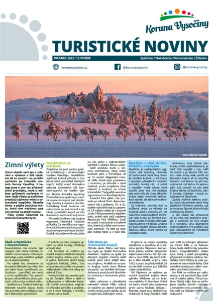 Zima je pro nás velmi důležitá část roku. Proto jsme připravili pro návštěvníky zimní číslo Turistických novin Koruny Vysočiny. Zavedou vás nejen na běžkařské trasy, ale i na ledovou stěnu, do muzeí nebo třeba na rybníky, kde můžete rybařit na dirkách.