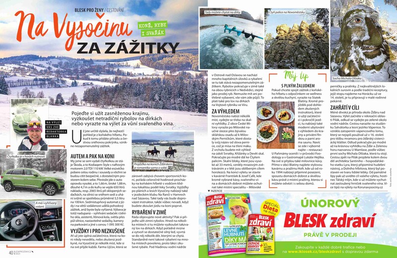 Lifestylové magazíny jsou hlavním komunikačním kanálem pro naší destinaci. Připravili jsme článek Na Vysočinu za zážitky do Blesku pro ženy.