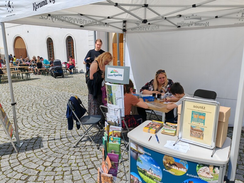 Na našem stánku se to hemžilo zábavou - nejen že děti soutěžily v různých hrách, ale i rodiče získávali cenné informace o tom, jak a kde mohou v Koruně Vysočiny trávit svůj volný čas. Rodinám jsme doporučovali třeba Santiniho šifru, Poutování po sochách Michala Olšiaka nebo Putování městy Koruny Vysočiny.