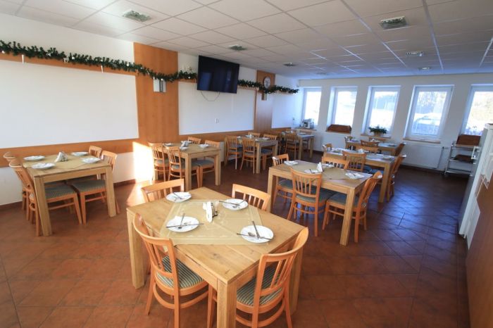 Prostory hotelu jsou kompletně bezbarierové. Ubytování je nabízeno včetně snídaně s možností plné penze. Všechny pokoje mají vlastní sociální zařízení. V objektu je vířivka a v areálu se nachází dětské hřiště.