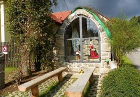 Ze Slavkovic pokračujeme po polní cestě až do Radňovic. Po překonání hlavní silnice se dostaneme do centra vesničky, kde natrefíme na Lurdskou jeskyni. Právě v těchto místech začíná radňovická křížová cesta, která nás zavede na Hrausův kopec. Od třech křížů, které jsou na konci této cesty, na nás čeká asi nejkrásnější výhled do krajiny z celého našeho výletu.