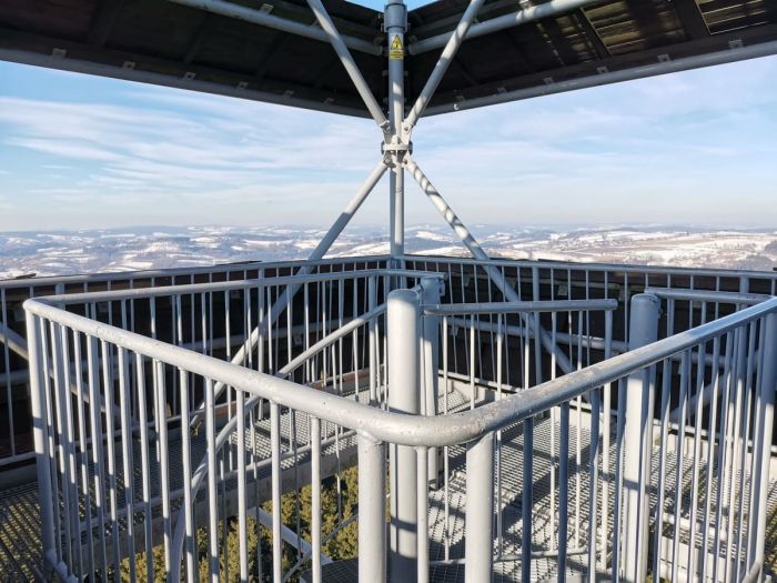 Vrchol rozhledny nabízí výhled na zajímavostí. Můžete si prohlédnout zříceninu hradu Zubštejna, část Bystřice nad Pernštejnem nebo hladinu přehrady Vír. Pokud se podíváte dále do okolí, uvidíte letiště v Poličce, TV vysílač Kojál, rozhlednu u Veselice v Moravském krasu, údolí Svratky, Harusův kopec u Nového Města na Moravě, Buchtův kopec, Daňkovice nebo masív Devíti skal. Za dobrých podmínek se dá dokonce vidět pára z jaderné elektrárny v Dukovanech, ale také Jeseníky, nejvyšší horu Moravy - Praděd a vzácně i Krkonoše.