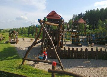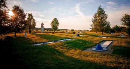 Venkovní sportovní areál jistě potěší milovníky tenisu, minigolfu, beach volejbalu. Pro rekreační sportovce je k dispozici minigolf, tenisový kurt, beach volejbal, kulečník, stolní tenis, fitness, půjčovna běžeckých lyží, venkovní šachovnice, petangue, ruská kuželna a další hry. Ubytovaní hosté mohou využít vyhřívaný bazén se skluzavkou a protiproudem. Pro děti nabízí venkovní areál rozsáhlé dětské hřiště, které je jistě potěší. Pro svou zajímavost a rozmanitost jej navštěvují děti ze širokého okolí, svou architekturou zaujal i televizní tvůrce pořadu o designu.