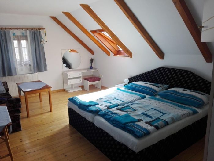 Chalupa nabízí možnost ubytování v pěti pokojích. Z toho jsou 4 pokoje 3 lůžkové, jeden pokoj s balkonem ve štítu 4 lůžkový. V celém Objektu zajišťujeme vytápění v Ú.T. V každém pokoji jsou dvě postele s nočními stolky, skříň, televize. Do všech pokojů je možné po dohodě přidat přistýlku.