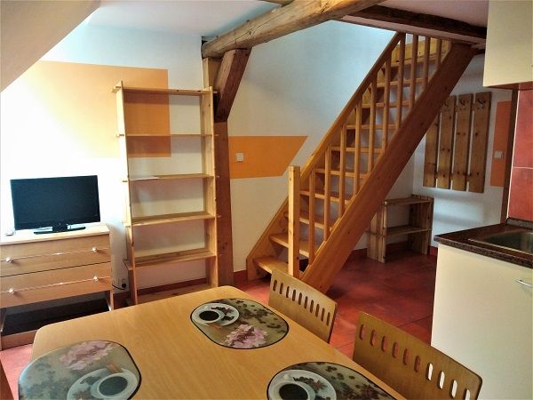 - Ubytování v 5 mezonetových a dvou klasických pokojích s příslušenstvím, TV a kuchyňkou.Celková kapacita penzionu max 24 osob. Ve spojení s přidruženou "BUDOVOU" je naše ubytovací kapacita až 54 osob včetně místnosti pro školení, cvičení apod. Ve druhé budově vlastní velká kuchyně s jídelnou.
