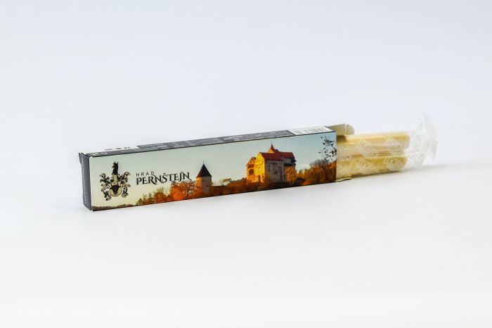 Oblíbené hořické trubičky s čokoládovou příchutí si u nás můžete zakoupit v netradiční krabičce s hradem Pernštejnem.