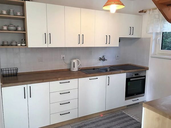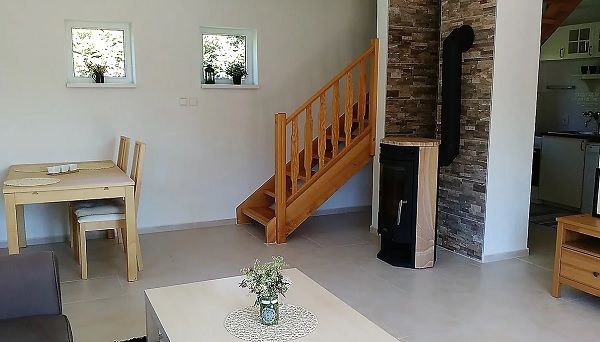 Kuchyně jsou vybaveny el. sporákem a troubou, mikrovlnnou troubou, lednicí vč. mrazáku, myčkou nádobí, kávovarem, rychlovarnou konvicí. V ložnicích jsou noční stolky s lampičkami a šatní skříně (povlečení v ceně). K chatě náleží dvě osvětlené terasy se zahradním nábytkem. K dispozici je badminton, kroket, petangue, dětský bazének, pískoviště, gril, trampolína a šipky. Po dobu pobytu jsou k zapůjčení 3 horská kola zdarma.