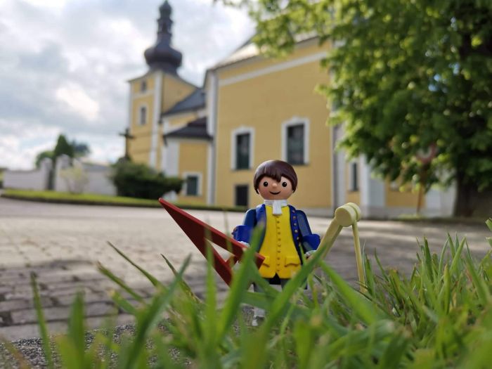 Další zastávku za dílem slavného architekta Jana Blažeje Santiniho si uděláme v údolí říčky Oslavy, kde nalezneme malebnou vesničku Obyčtov. Zde na malém skalním ostrohu spatříme náš další cíl – kostel Navštívení Panny Marie. Půdorys tohoto díla inspirovaného Santinim připomíná želvu, kterou najdeme i ve znaku obce.