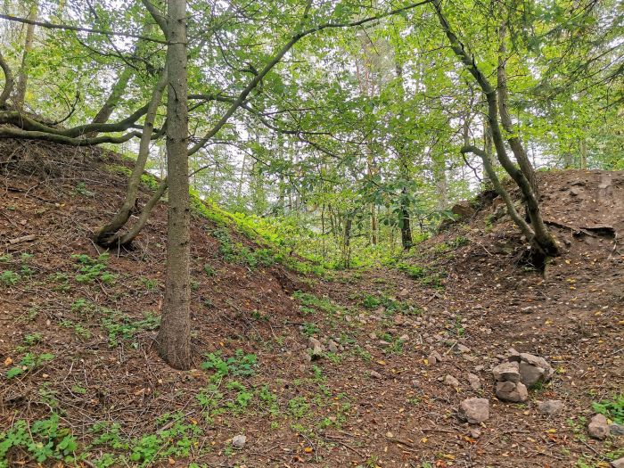 Hrad byl výškově oddělen na dvě podélné části, z nichž jihozápadní byla nižší a měla tvar zaobleného obdélníku. Obtáčel ho příkop o šířce okolo 10 metrů. Zbytky zástavby se nedochovaly, ale návštěvníci si mohou prohlédnout zachovalé pozůstatky okružního příkopu na jižní a severní straně, kde jsou zachované vnější valy o výšce asi 2 metry.