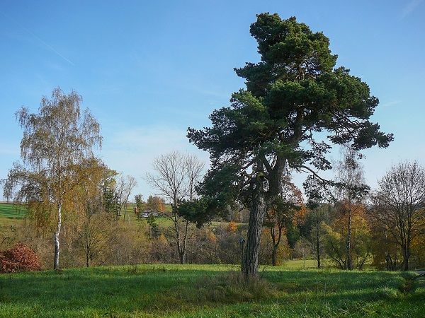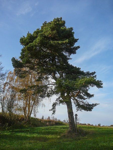Mezi chráněné památné stromy České republiky patří tato borovice s obvodem kmene 150 cm a výškou 12 metrů.