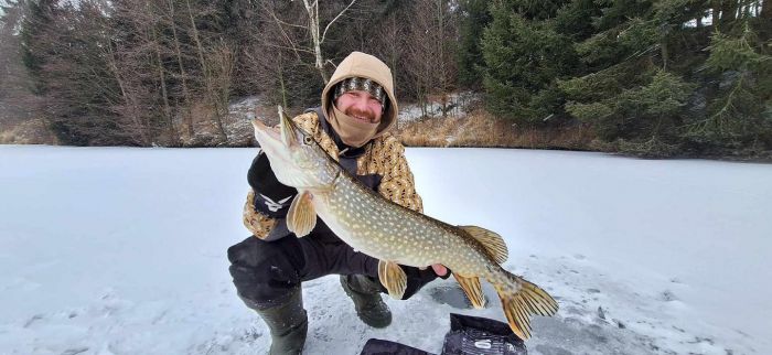 V zimním období při dostatečné tloušťce ledu je možné lovit na dirkách.