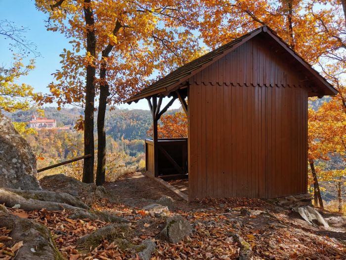 Po prohlídce hradu Pernštejn budeme sestupovat až k říčce Nedvědičce, kde nás čeká dřevěný krytý most. Budete-li chtít se osvěžit nevynechejte studánku Korejtko. Značená naučná stezka nás k další krásné vyhlídce - Skalní vyhlídka.