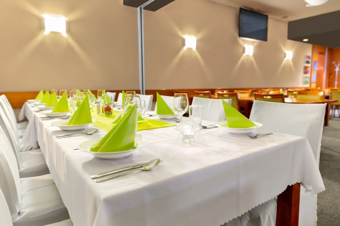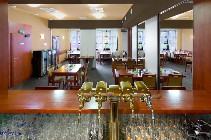 Restaurace disponuje kapacitou 90 míst a nabízí i několik salonků, které lze pomocí variabilního systému posuvných stěn přizpůsobit různým potřebám - od menších i větších soukromých oslav až po firemní workshopy nebo konference. Každý pracovní den si hosté mohou vybírat z poledního menu nabízejícího šest různých jídel a speciální týdenní nabídky. K dispozici je taktéž rozvoz pokrmů, jenž je v rámci Bystřice nad Pernštejnem zdarma.