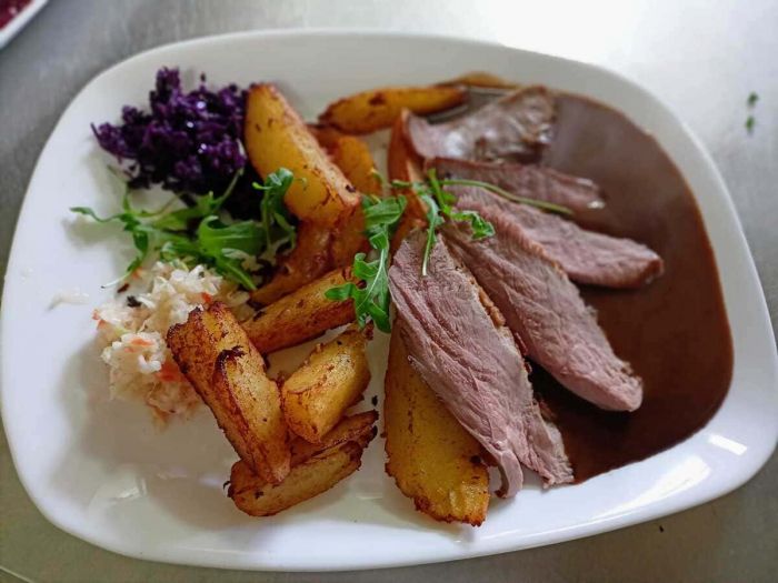 U Berušky si však během pravidelných víkendových gastronomických akcí hosté mohou vychutnat taktéž nejrůznější druhy hamburgerů, řízkové speciality či třeba grilovaný kebab. Nechybí stálá nabídka dětských jídel nebo dezerty v podobě palačinek nebo zmrzlinových pohárů. Restaurační kuchyně funguje zhruba do 15 až 16 hodin, zatímco večer se k řemeslně načepovanému pivu podávají pizzy a studené pokrmy, jako je třeba klasický utopenec nebo nakládaný puk s cibulí.