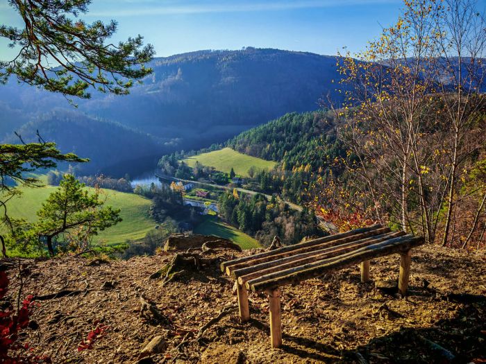 Jedním z kouzelných míst na Instagramové stezce je vyhlídka Klubačice, na nejvyšší vírské skále. Zde se vám naskytne dechberoucí pohled na údolí řeky Svratky, ideální pro první fotografické zastavení. Klubačice, stejně jako další zastávky na trase, je přístupná pěším turistům a nabízí klidné útočiště pro podzimní rozjímání a focení. Kousek dál po směru toku řeky se nachází Hraběcí stolek. Ovšem nejlepší přístup na vyhlídku budete mít z cesty mezi Věstínkem a Bolešínem. Na Hraběcím stolku vás čeká útulný altánek s výhledem do hlubokého údolí s meandrem Svratky. Podzimní zbarvení listů na stromech zde vytváří jedinečnou atmosféru, která se promítne do každé fotografie.