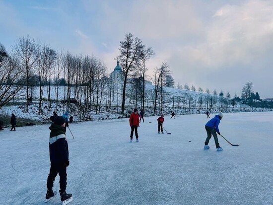 Další krásné bruslení čeká na Konventském rybníku, která se nachází přímo pod žďárským kostelem sv. Jana Nepomuckého na Zelené hoře. Cisterciácké kláštery byly nejčastěji zakládány kolem vodních toků, neboť cisterciáci prosluli zakládáním rybníků. Architekt Jan Blažej Santini Aichel navrhl umístění Konventského rybníku tak, aby se na jeho vodní hladině, stejně jako v zrcadle, odrážela stavba poutního kostela sv. Jana Nepomuckého. Už jste někdy hráli hokej s vyhlídkou na památku UNESCO?