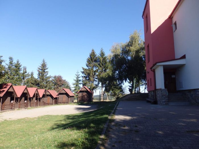Pro větší skupiny je možné využít také 10 čtyřlůžkových dřevěných chatek (květen–říjen).