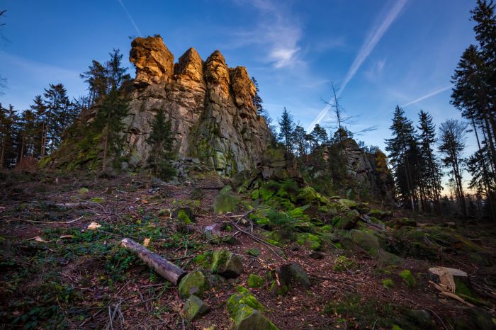 Přírodní rezervace Čtyři palice, známá svými impozantními skalními útvary tvořenými čtyřmi mohutnými bloky - Paličatou, Děvínem, Tvrzí a Opomenutou - je unikátním místem s geologickou historií sahající do doby starších čtvrtohor. Skalní útvary dosahující výšky 732 metrů nad mořem a délky až 50 metrů byly vytvořeny mrazovým zvětráváním a jsou obklopeny zachovalými lesními porosty Žďárských vrchů.
