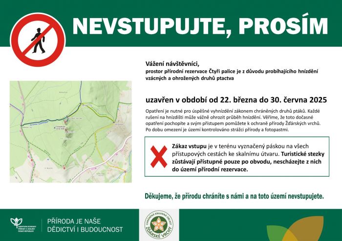 Ochrana přírody je naší společnou zodpovědností, a proto vyzýváme všechny návštěvníky, aby respektovali dočasný zákaz vstupu. Věříme, že toto dočasné opatření ze strany CHKO Žďárské vrchy pomůže zajistit bezpečné hnízdění sokola stěhovavého, který se po sedmdesáti letech vrátil do této lokality, a přispěje k ochraně místní unikátní biodiverzity.