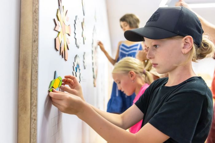 Tvorba mozaiky: Pomocí magnetických geometrických tvarů můžete navrhovat vlastní vzory nebo se inspirovat reálnými historickými podlahami.