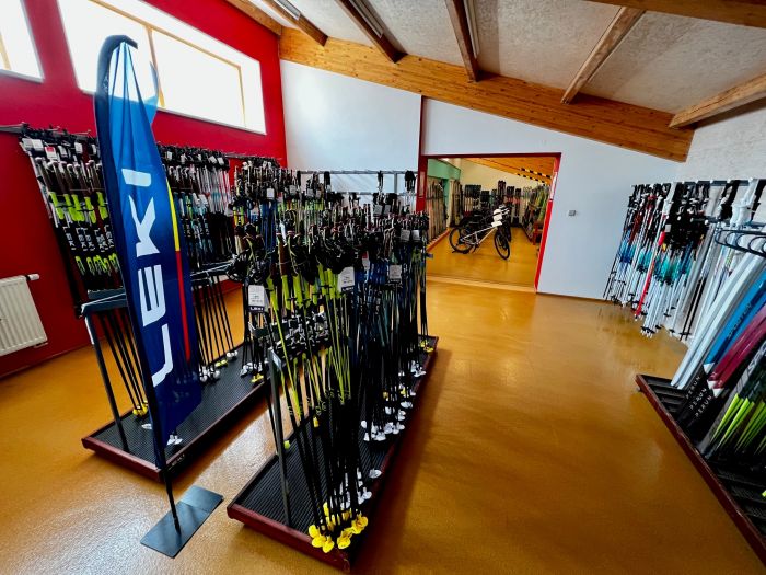 Součástí nabídky je celoroční servis běžeckých i sjezdových lyží – od broušení hran až po úpravu skluznic. Vázání vám navíc na místě namontují a seřídí na specializovaném stroji, a pokud ho zakoupíte přímo zde, máte montáž i seřízení zdarma. Servis provádějí i na lyžích a kolech zakoupených jinde, takže se sem můžete zastavit kdykoliv během svého pobytu.