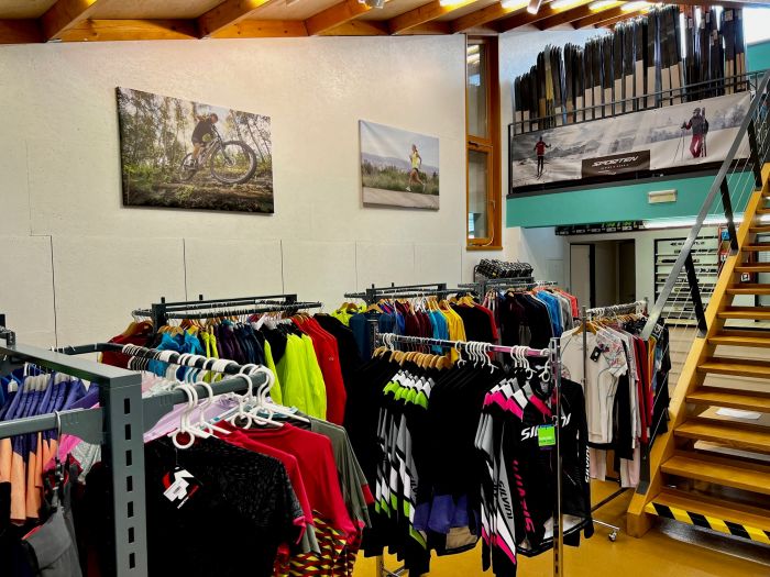 Prodejna nabízí také obuv, oděvy, hole, brýle, batohy, ponožky, funkční prádlo a další vybavení pro lyžování, cyklistiku i volný čas. Zajišťuje také cyklistický servis a garanční prohlídky prováděné zkušeným mechanikem.