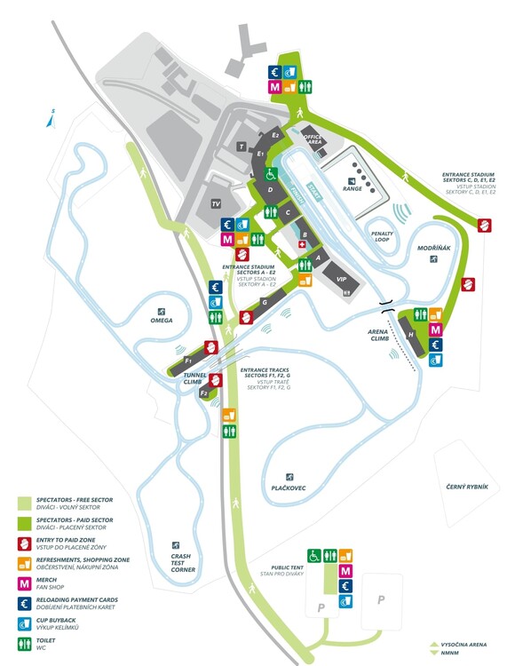 Brány areálu se budou otevírat zhruba čtyři hodiny před startem prvního závodu, takže bude dost času projít si fanouškovskou zónu, dát si něco dobrého a nasát atmosféru. Medailové ceremoniály proběhnou přímo na stadionu hned po skončení závodů.