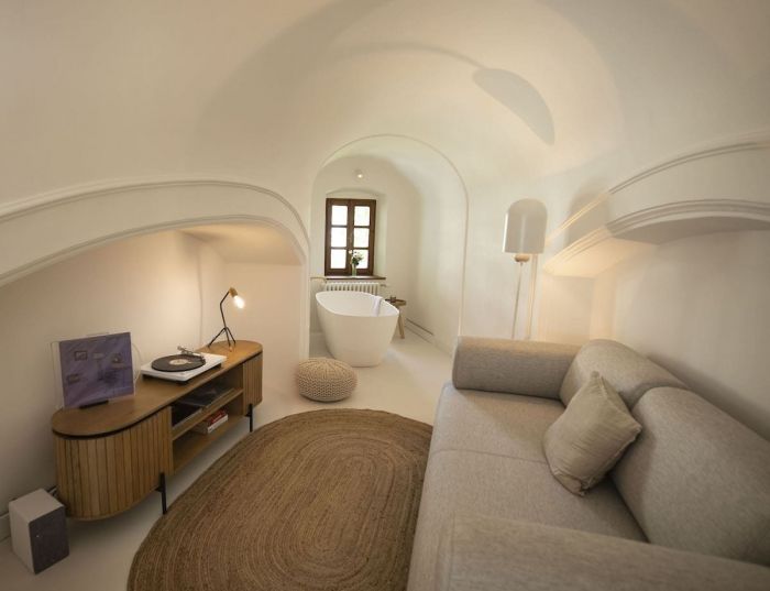 - Studia v ambitu: Bydlení s duchem baroka, kde místo televize najdete gramofon a v otevřeném prostoru v ambitu volně stojící vanu pro dokonalou romantiku.