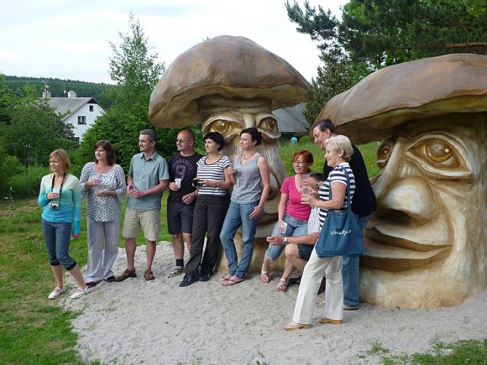 U penzionu najdete oblíbené sochy Michala Olšiaka, který zde ztvárnil Houby.