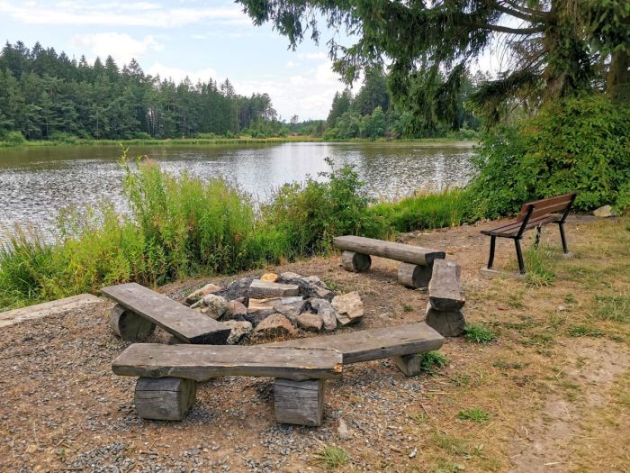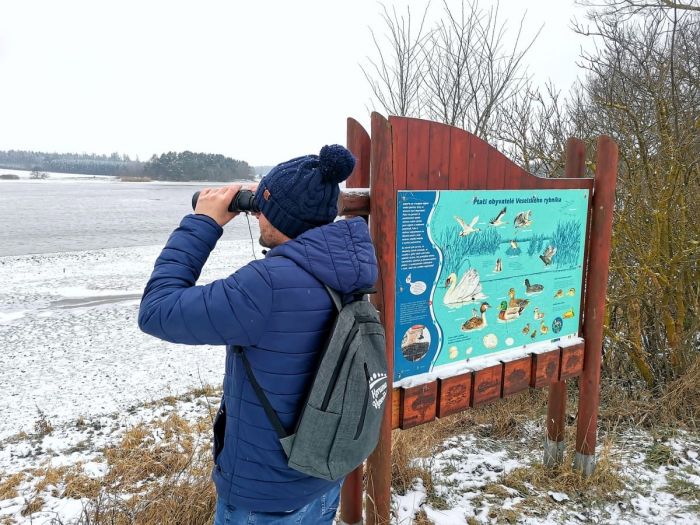 Ti, kteří budou mít ještě energii, se mohou vydat na druhou stranu rybníka a navštívit ptačí pozorovatelnu, která je umístěna na volně přístupné dřevěné věži.