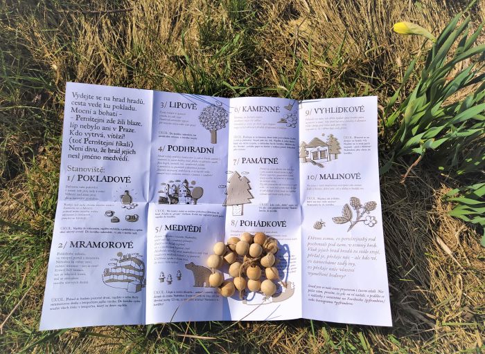 Hrací kartu hledačky dostanete v infocentru Nedvědice, v Cukrárně Milena, v Bistru Malinová louka na parkovišti pod hradem.