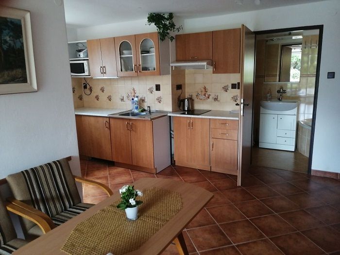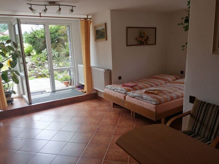 K dispozici budete mít 2 apartmány dohromady s 6 lůžky, které je možné vzájemně propojit, internet, 2 sprchy a toalety, 2 kuchyňky, 2 televize a celou zahradu.