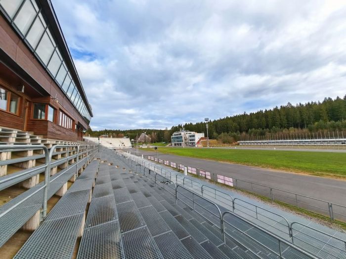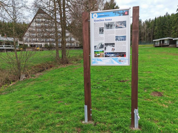 Naučná stezka Lyžování na Novoměstsku, jež byla zprovozněna v roce 2022 u příležitosti novoměstského Roku lyžařů, zahrnuje deset zastavení. První najdete u městského úřadu na Vratislavově náměstí, dále cesta pokračuje kolem domu lyžařské rodiny Německých pod Harusův kopec, na jehož vrcholu stávala vyhlášená turistická chata, odkud v roce 1934 odstartoval i první legendární závod Zlatá lyže. A jen o kousek dál se vypíná kopec Šibenice se zmíněnými skokanskými můstky. Cesta pak míří dolů do sportovního areálu ve Vysočina Areně. Právě v těchto místech dnes proslulých konáním biatlonových mistrovství světa se nachází také Hotel Ski, jenž byl v roce 1972 uveden do provozu jako moderní náhrada v roce 1942 vyhořelé a již neobnovené chaty na Harusově kopci.
