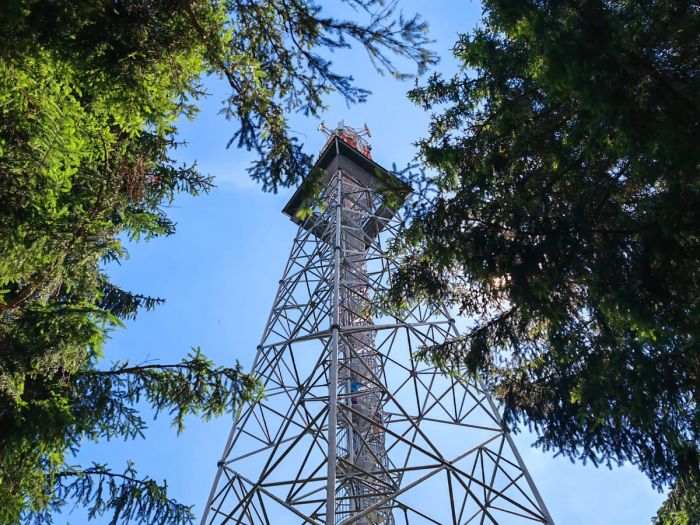Historie rozhleden na kopci nad Rovečným sahá až do 19. století, kdy zde stála měřičská věž, jejíž plošina se využívala jako rozhledna. Současná rozhledna měří 59 metrů a návštěvníci musí zdolat 201 schodů, aby se dostali na ochoz, který se nachází 38 metrů nad zemí. Vyhlídkový ochoz je umístěn v nadmořské výšce 803 metrů nad mořem, což ho činí skvělým místem pro pozorování okolní krajiny.