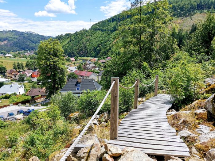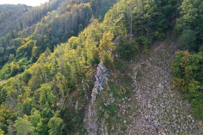 Na tomto místě stávala dříve již vyhlídka, avšak obnova byla motivována i kalamitou způsobenou kůrovcem. Turisté se k vyhlídce dostanou po odlesněném svahu z kamenité sutiny. Stezka začíná u parkoviště za Forest Resortem, což je přestavěná vila rodiny Rossi, která se nacházela ve zchátralém stavu.