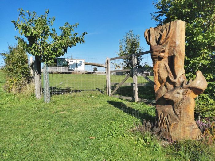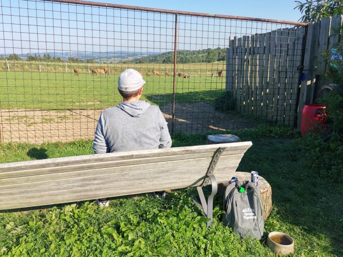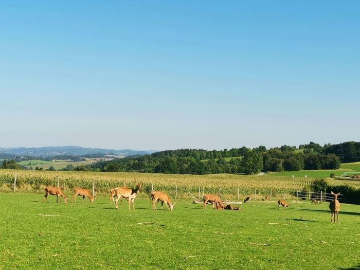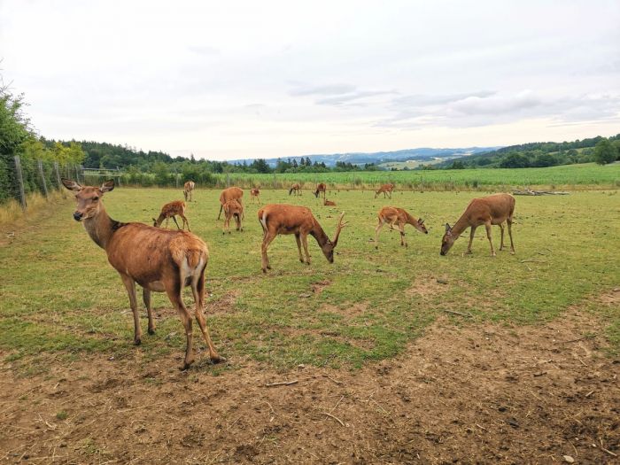Samoobslužný bar u jelení a dančí farmy na Odranci s možností posezení, občerstvení a výhledem do kraje i na jeleny a daňky.