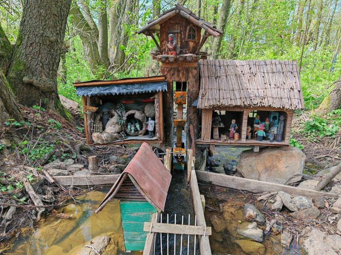 Dva dřevěné mlýnky jsou nejen okouzlující na pohled, ale také plné pohyblivých figurek, které místu dodávají živost a fantazii. Horní mlýnek představuje peklo, kde narazíte na čerta dokonce i v kadibudce. Dolní mlýnek vás zase zavede do světa pohádek, kde potkáte tříhlavého draka či čarodějnici.