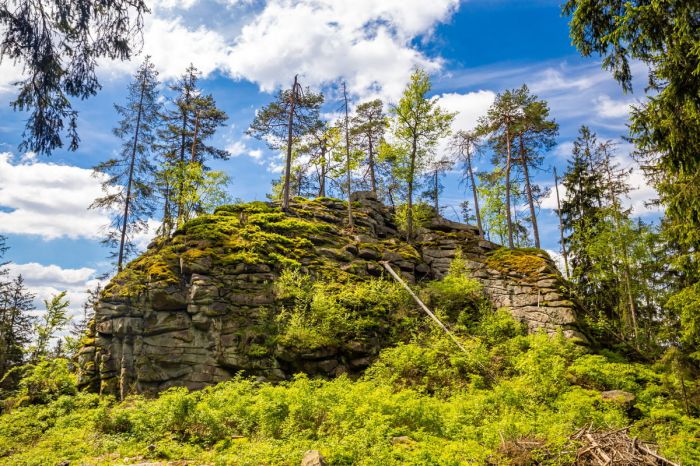 Ze skal je vidět směrem na Křižánky, odkud sem lze dojít po modré turistické značce.